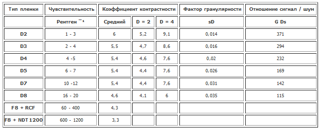 Сенситометрические характеристики рентгеновских пленок AGFA NDT