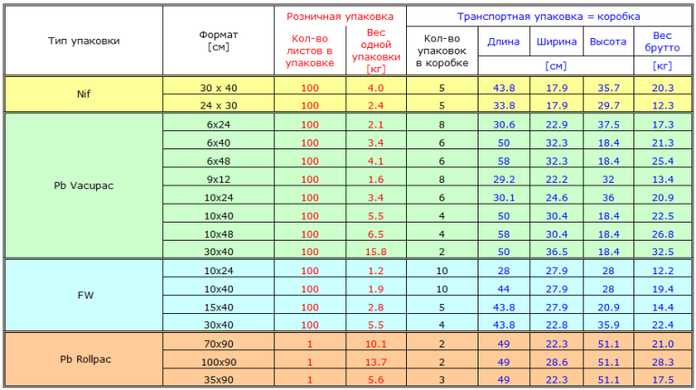 С помощью приведенных данных вы сможете определить вес и объем заказанной Вами продукции.